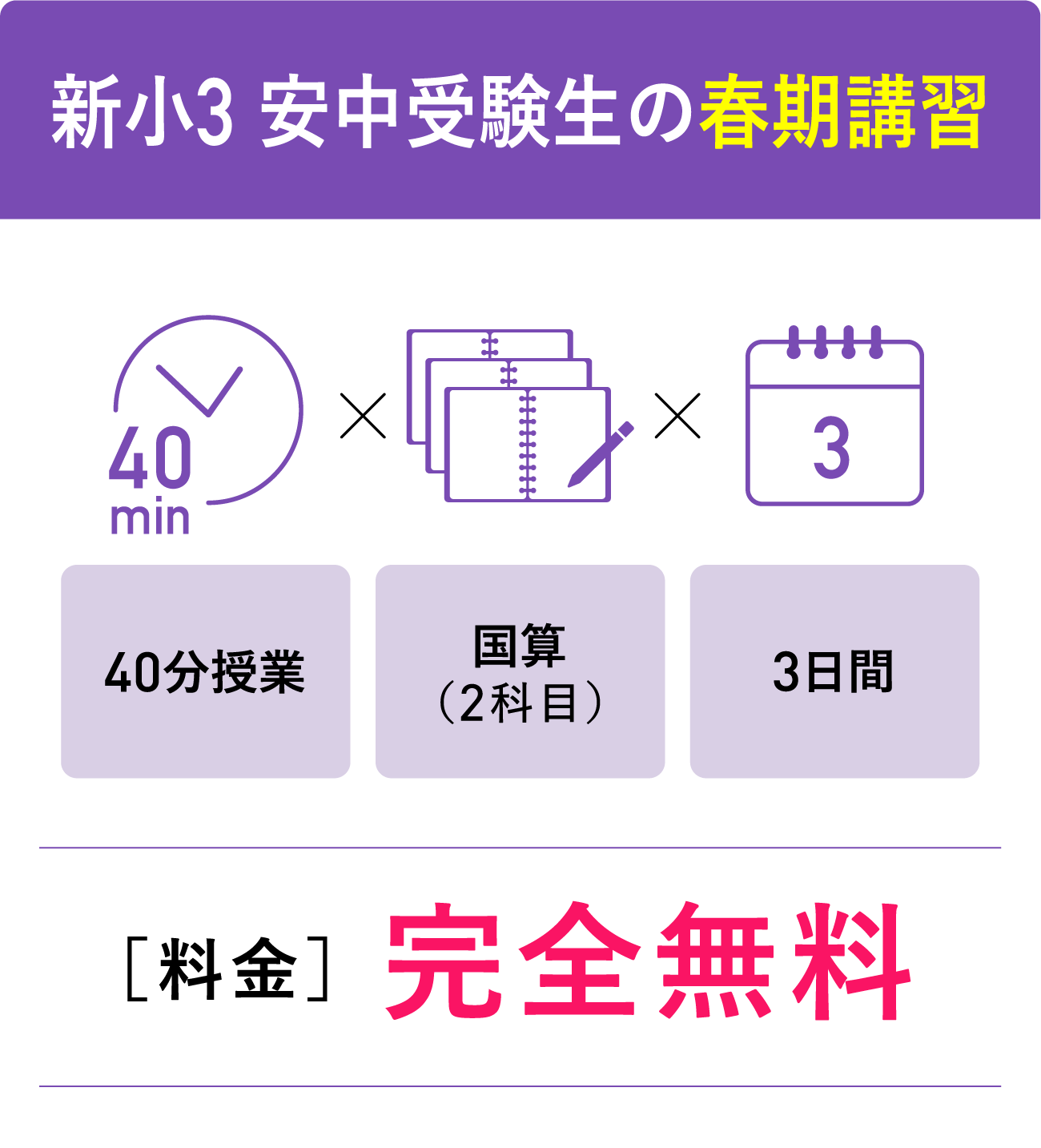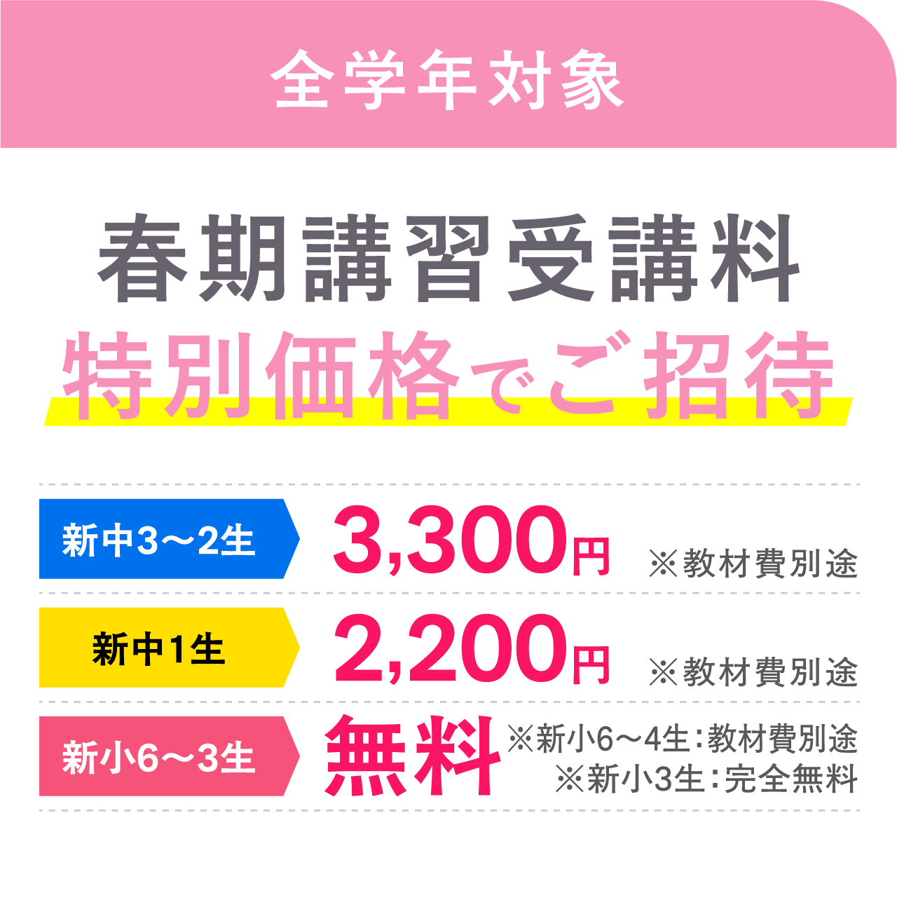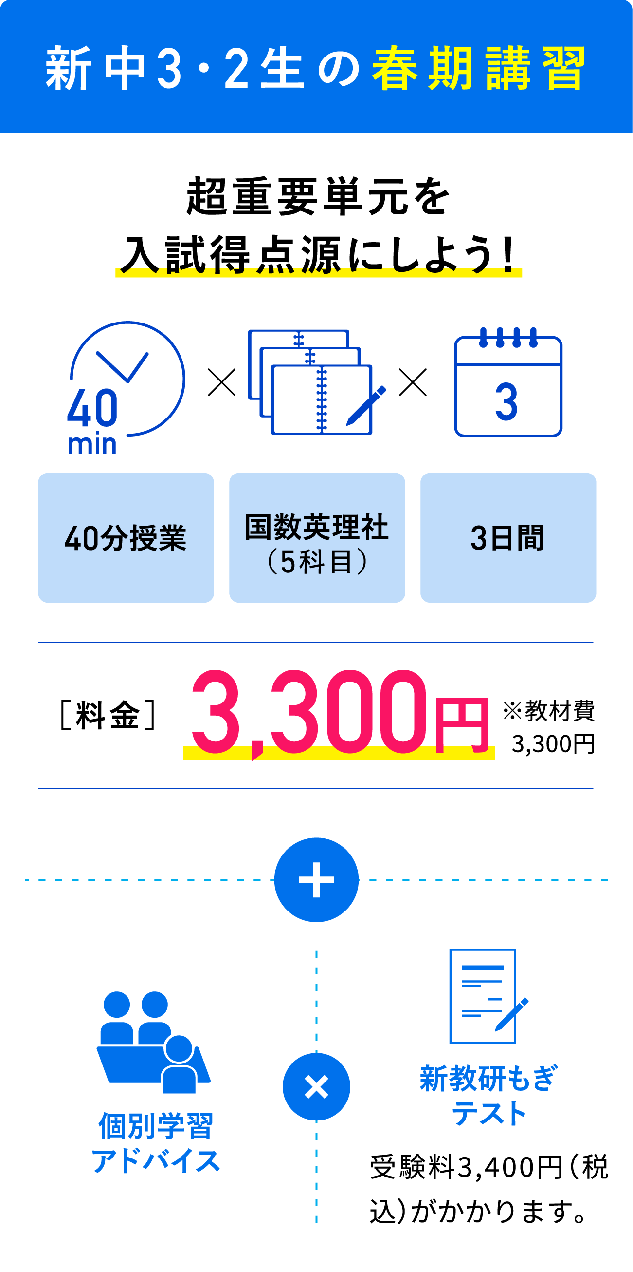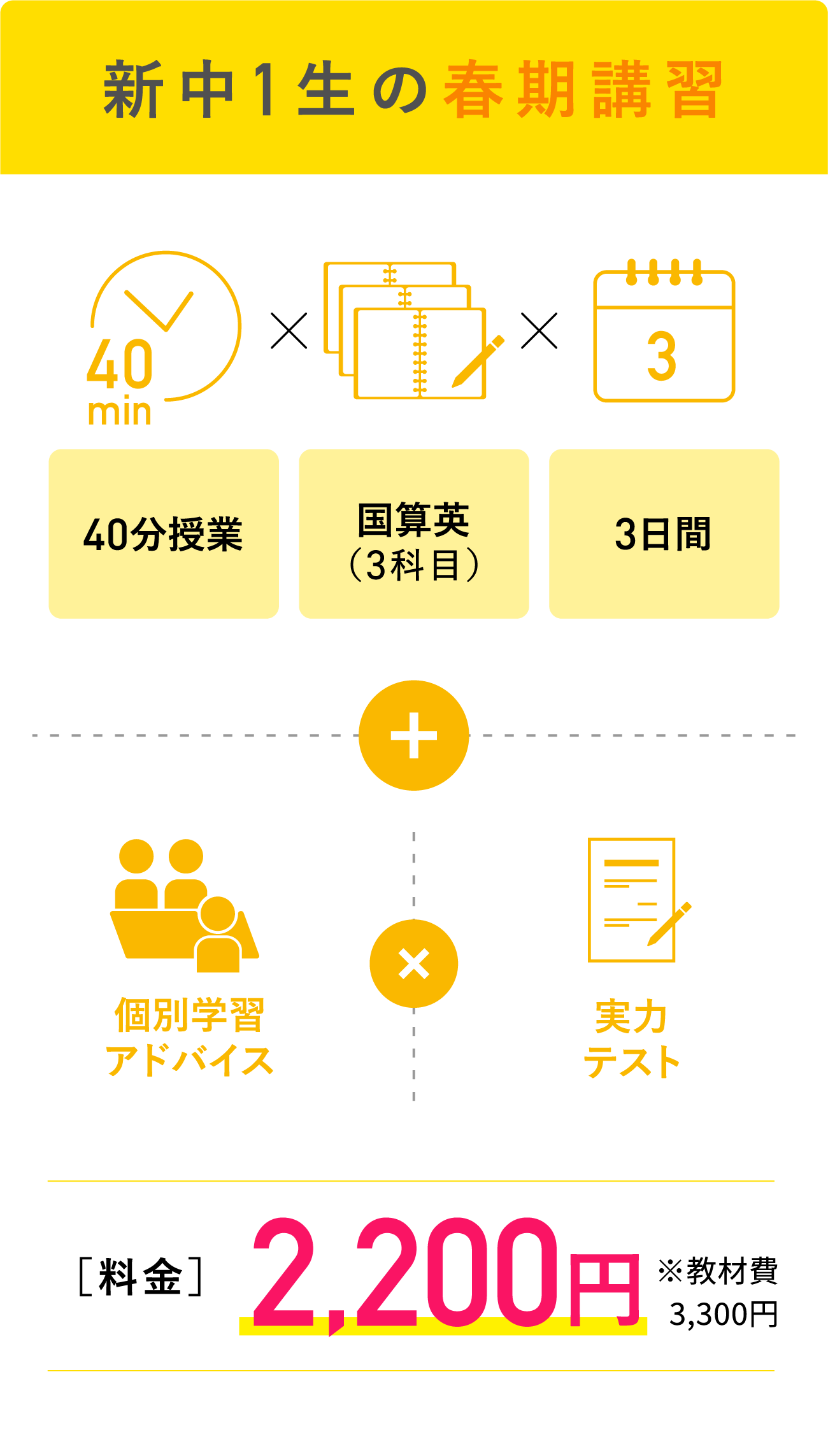 NSGオリジナルテキストを使い、これまでに学習した内容を基礎から応用までバランス良く復習します。基礎をしっかりと定着させるとともに、難度の高い問題に挑戦することで「考える力」が身につきます。春期講習を通して着実に実力が向上し、「勉強を頑張った成果」として自身の成長をはっきりと実感できます!
