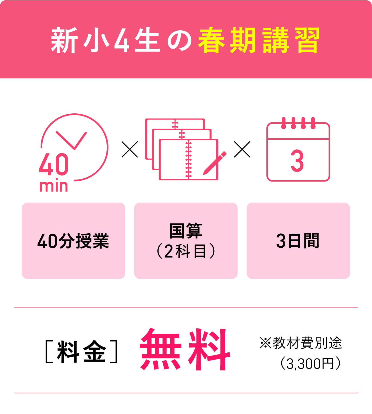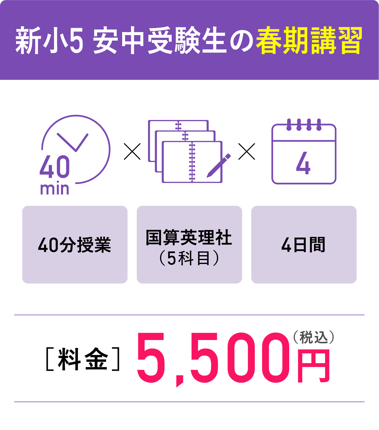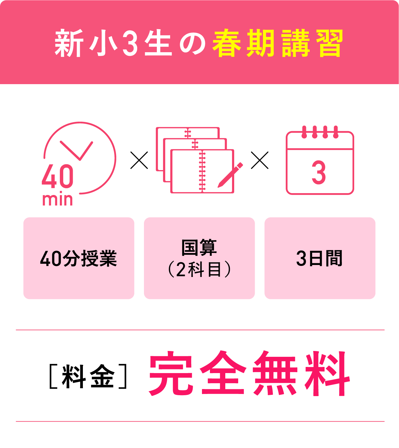 NSGオリジナルテキストを使い、これまでに学習した内容を基礎から応用までバランス良く復習します。基礎をしっかりと定着させるとともに、難度の高い問題に挑戦することで「考える力」が身につきます。春期講習を通して着実に実力が向上し、「勉強を頑張った成果」として自身の成長をはっきりと実感できます!