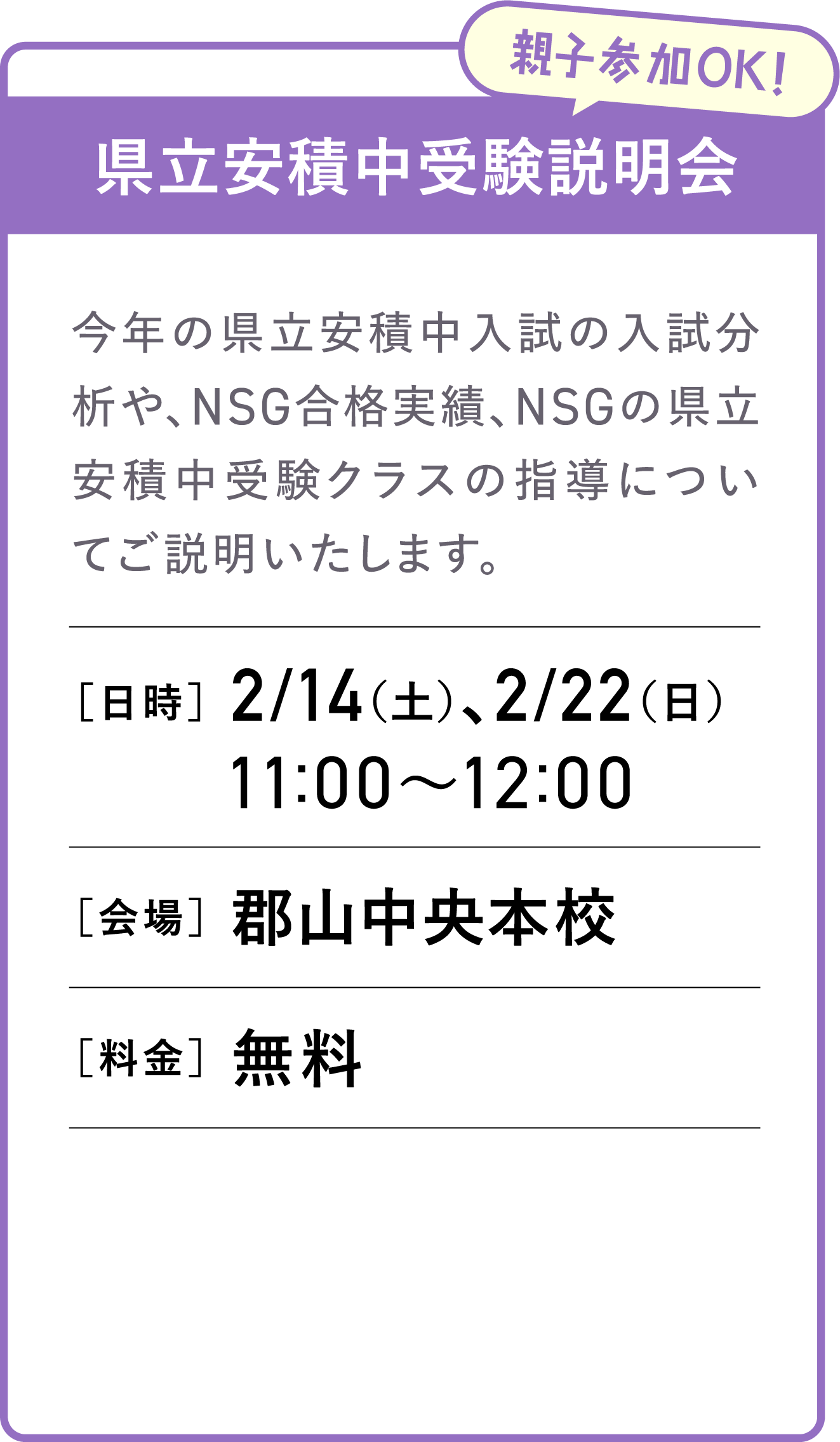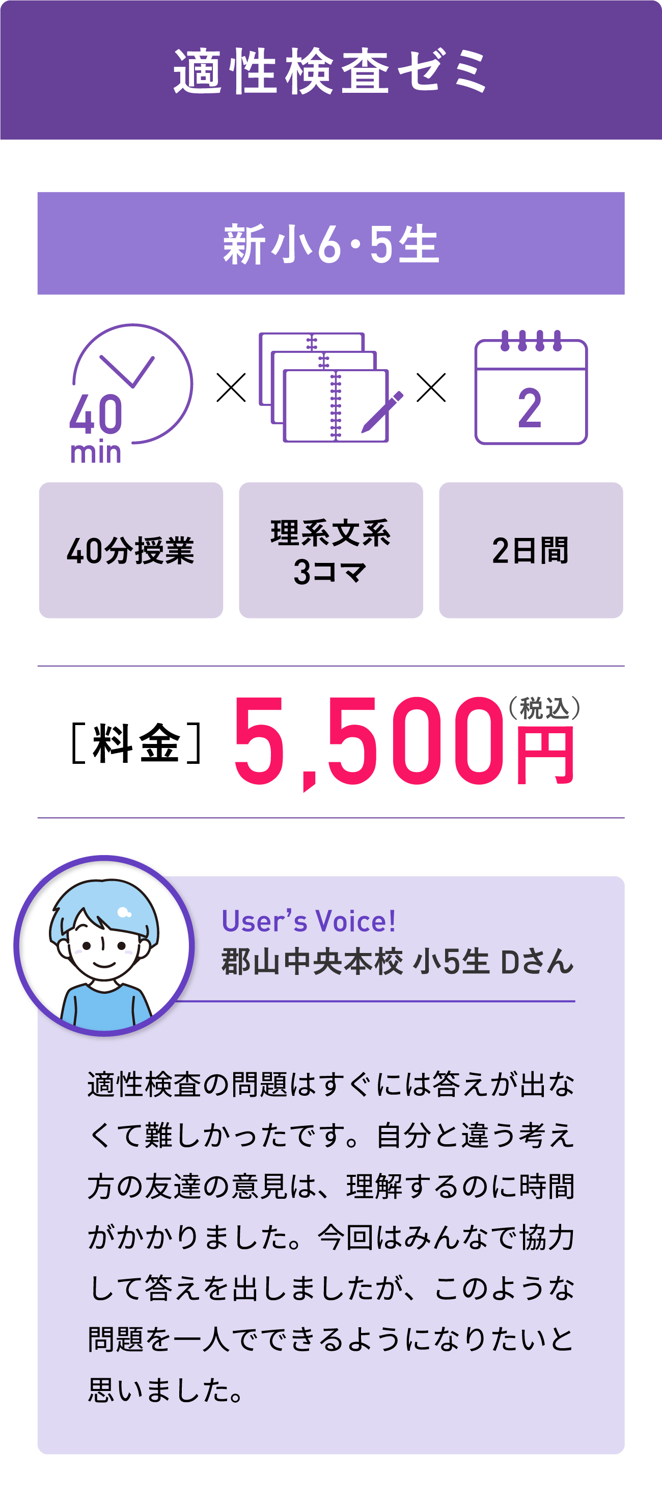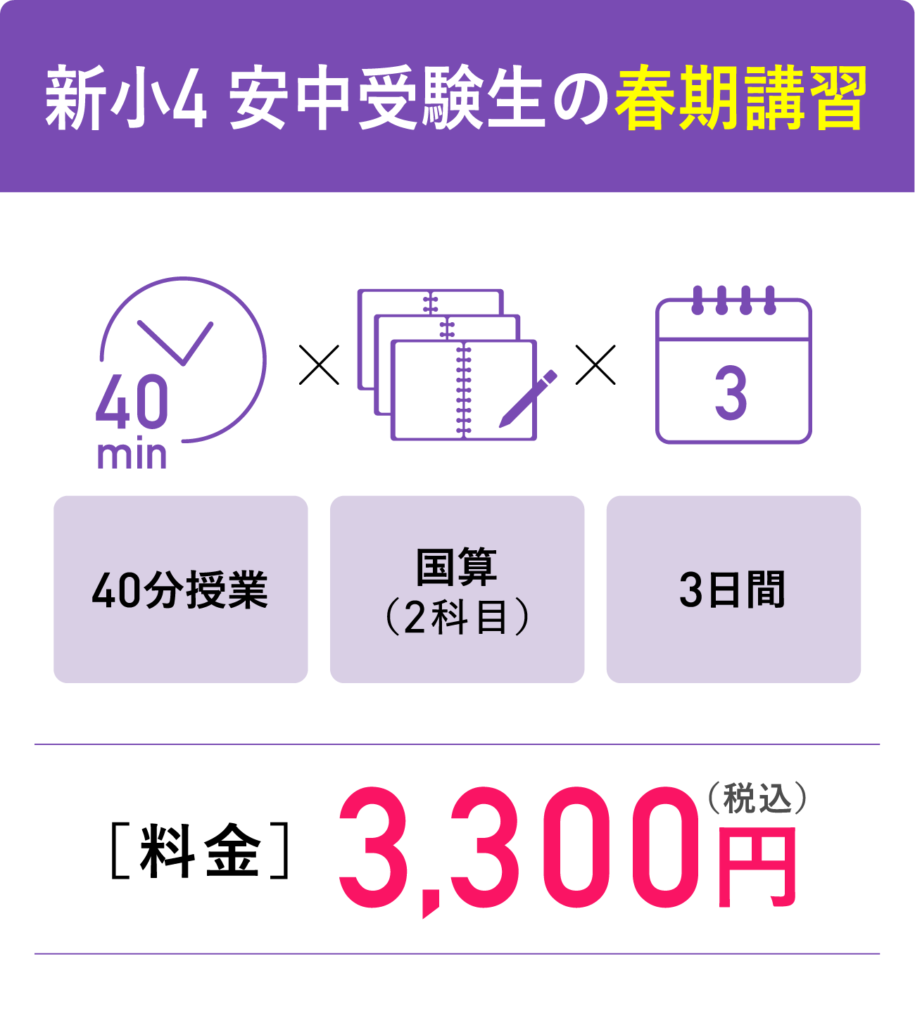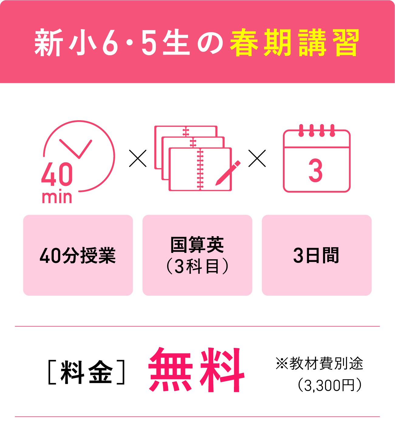 NSGオリジナルテキストを使い、これまでに学習した内容を基礎から応用までバランス良く復習します。基礎をしっかりと定着させるとともに、難度の高い問題に挑戦することで「考える力」が身につきます。春期講習を通して着実に実力が向上し、「勉強を頑張った成果」として自身の成長をはっきりと実感できます!